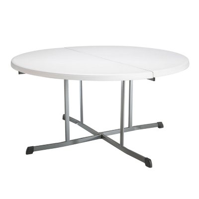 Economy Fold-in-Half Table - 48" Diameter H-3138FIH - Uline from www.uline.com Standard folding tables can hold more weight since there is not a crevice in the middle. A seam down the middle of the table allows it to fold in half. Folded decorative napkins can dress up a casual dinner and make the table settings at formal dinners more unique. Folds in middle to only 30 x 36 for easier handling, storage and transportation. 1 folding table and chair set is easy to carry and store 2 resist acid alkali high temperature 3 hdpe steel tube stable. Table takes some force to open the first time since the plastic leg clips are not broken in yet. Not only do the legs on these tables fold up, the table surface also folds in half, making them more compact than traditional folding tables. Enjoy free shipping on our selection of rectangular folding tables, banquet tables, and outdoor folding tables.