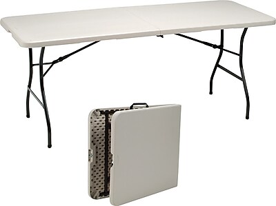 Folding table seating capacity guide. Convenient and compact, staples offers folding tables that are an essential for meetings and workshops. The table top itself does not fold. We have a 32 inch monitor, a keyboard, mouse and laptop that fits on the table with room to spare. A seam down the middle of the table allows it to fold in half.